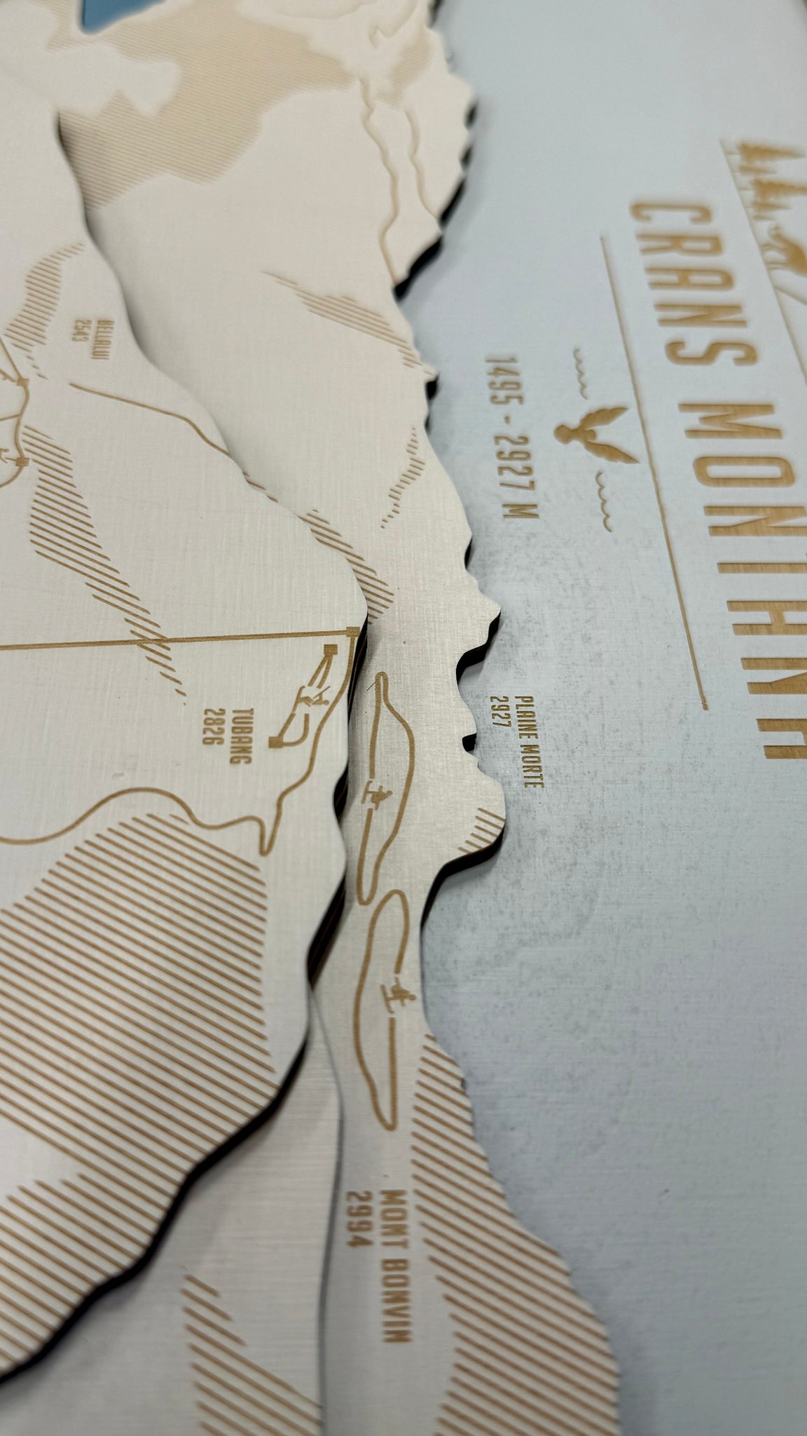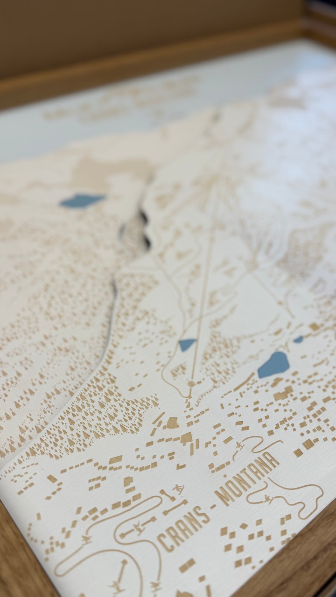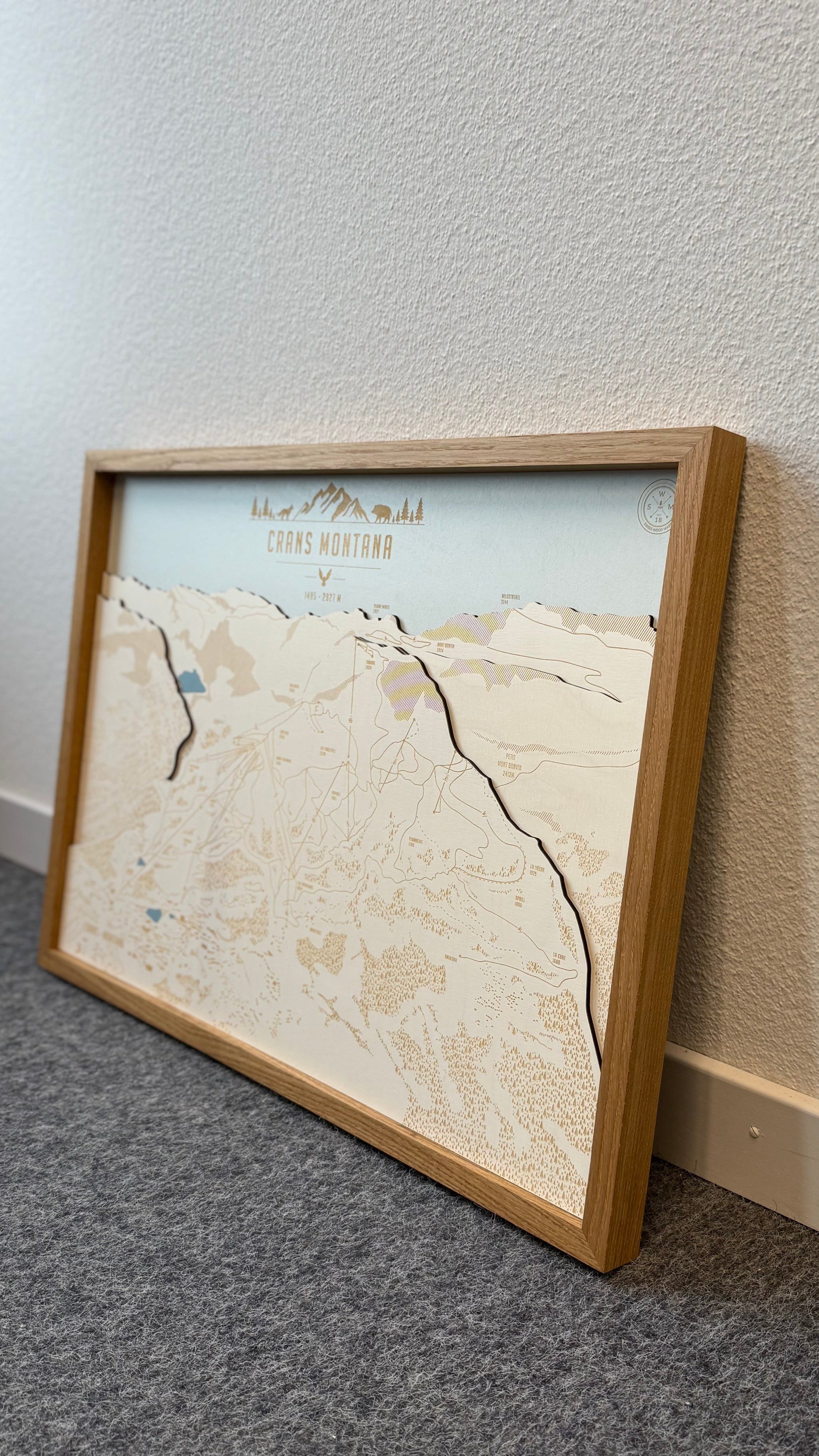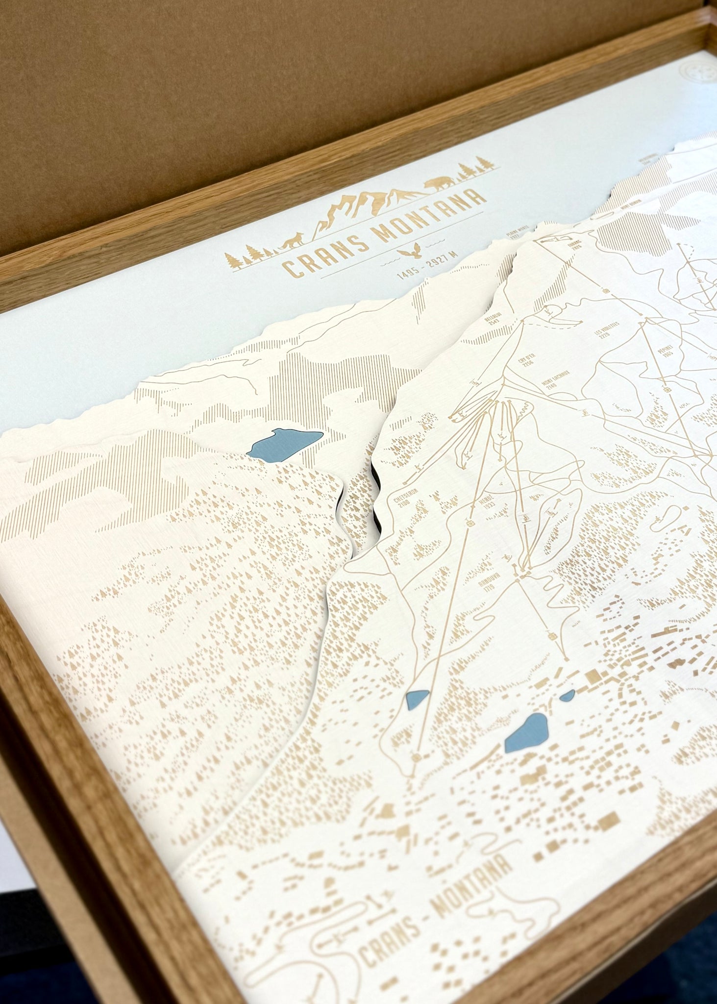 Imagine standing above Crans-Montana, surrounded by a spectacular alpine panorama — overlooking one of Switzerland’s most iconic ski resorts, with sweeping views across the Valais Alps and the Bernese Oberland. We want you to preserve this exact feeling forever and take it home with you — as a high-quality Wood Map.